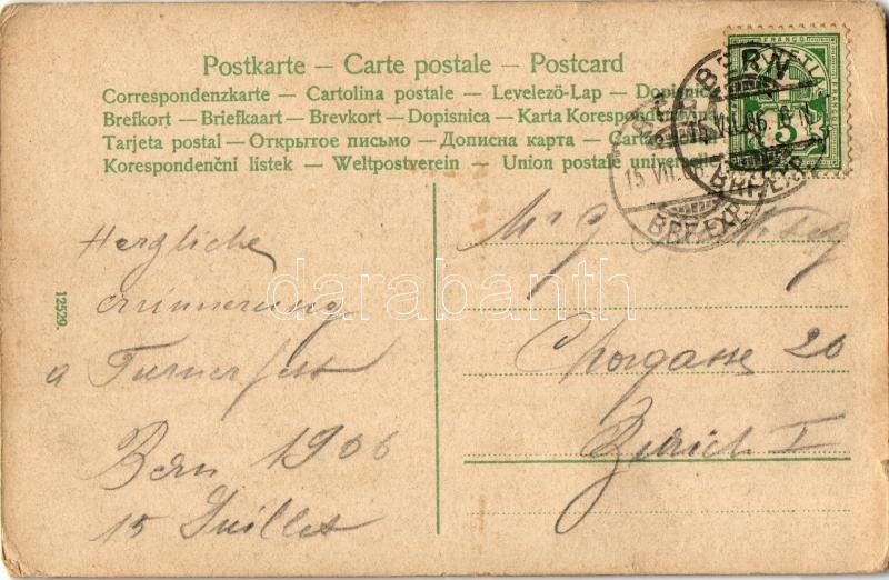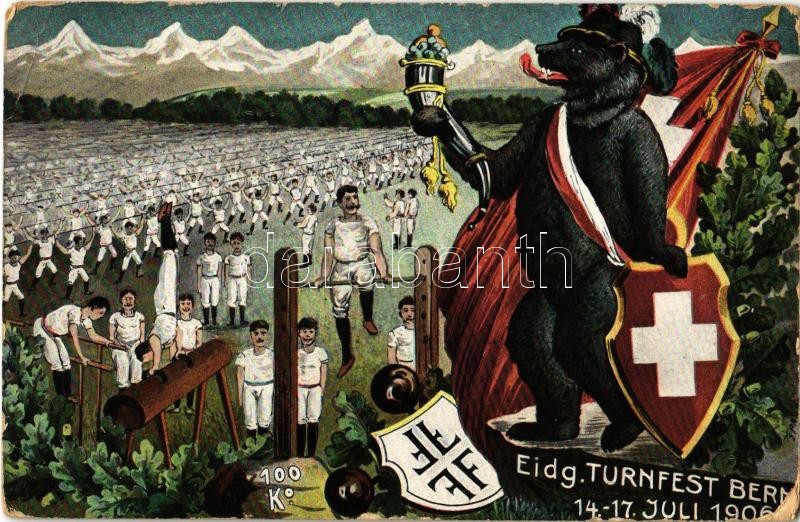 Leírás: 1906 Bern, Eidgenössisches Turnfest 14-17. Juli / Federal Gymnastics Festival, sport event, Swiss coat of arms (kopott sarkak / worn corners)