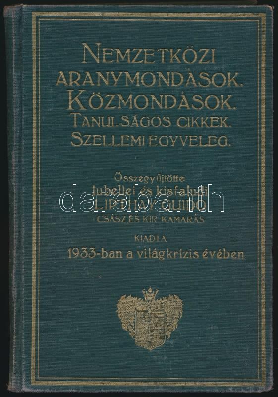 Nemzetközi aranymondások. Közmondások. Tanulságos cikkek. Szellemi egyveleg. Összegyűjtötte: lubellei és kisfaludi Lipthay Guido csázs. királyi kamarás. Kiadta 1933-ban a világkrízis évében. Bp.,1933,Jupiter-ny. Kiadói aranyozott egészvászon kötés, kopott borítóval, kissé laza fűzéssel, az első lapon szakadással.