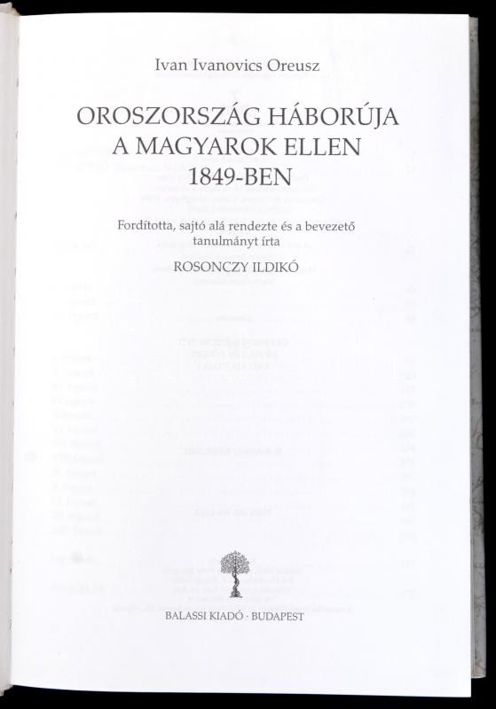 Ivan Ivanovics Oreusz: Oroszország a magyarok ellen 1849. Ford., sajtó alá rendezte és a bevezető tanulmányt írta: Rosonczy Ildikó. Bp.,2002,Balasssi. Kiadói kartonált papírkötés.