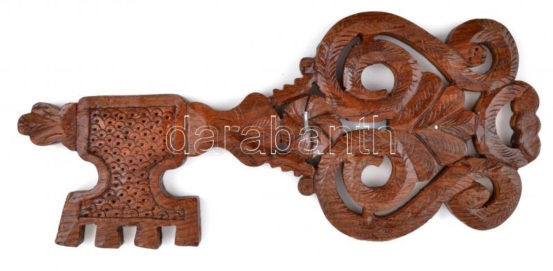 Leírás: Faragott fa kulcstartó, 31×13 cm