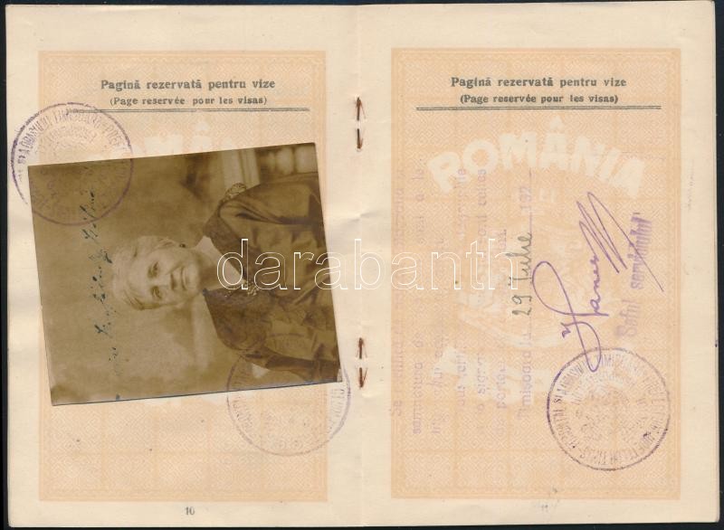 1922 Román útlevél / Romanian passport https://www.darabanth.com/hu/355-Gyorsarveres/355.0/Mutargy-papirregiseg-egyeb/Okmanyok~500017/1922-Roman-utlevel-Romanian-passport~II2028994