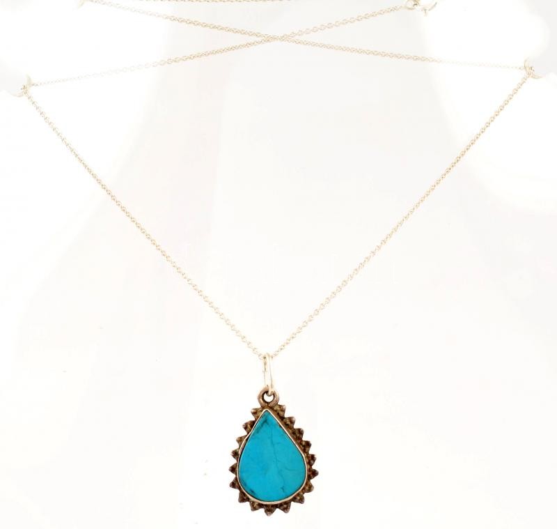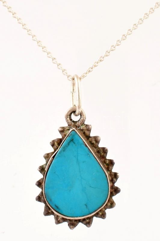 Leírás: Ezüst lánc türkizköves medállal 3,3 g