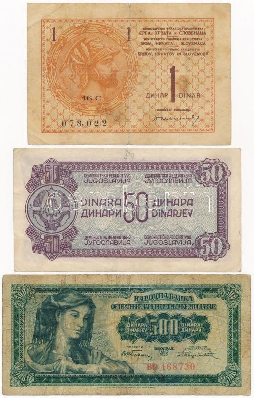 Szerb-Horvát-Szlovén Királyság 1919. 1D + Jugoszlávia 1944. 50D + 1955... https://www.darabanth.com/hu/355-Gyorsarveres/355.0/Numizmatika/Kulfoldi-bankjegyek~2500012/Szerb-Horvat-Szloven-Kiralysag-1919-1D-plus-Jugoszlavia-1944-50D-plus-1955-500D-FIII-III--Kingdo~II2025931