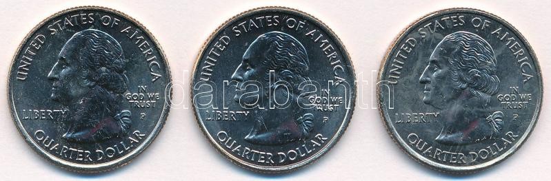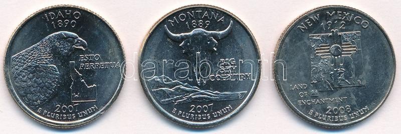 Amerikai Egyesült Államok 2007P 1/4$ Cu-Ni "50 állam - Idaho" + 1/4$ Cu-Ni "50 állam - Montana" + 2008P 1/4$ Cu-Ni "50 állam - Új-Mexiko" T:1,1-