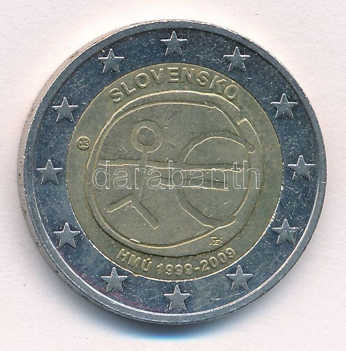 ... https://www.darabanth.com/hu/355-Gyorsarveres/355.0/Numizmatika/Kulfoldi-fem-es-ezustpenzek~2500013/Szlovakia-2009-2E-Gazdasagi-es-Monetaris-Unio-10-evforduloja-T1--Slovakia-2009-2-Euro-~II2020237
