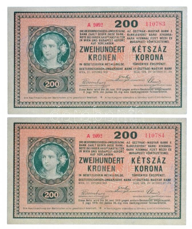 Leírás: 1918. 200K "A 2092" hullámos hátlappal (2x) sorszámkövetők T:II