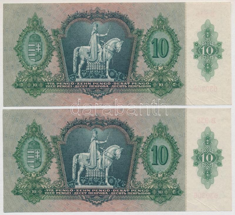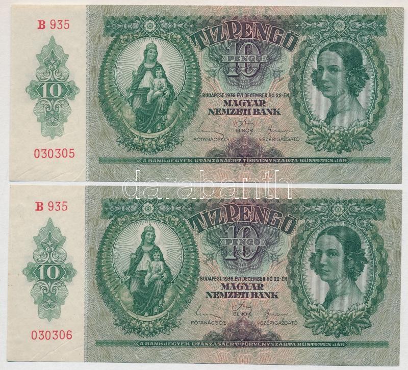 1936. 10P (2x) sorszámkövetők T:I-,II https://www.darabanth.com/hu/355-Gyorsarveres/355.0/Numizmatika/Magyar-bankjegyek~2500007/1936-10P-2x-sorszamkovetok-TI-II~II2029901