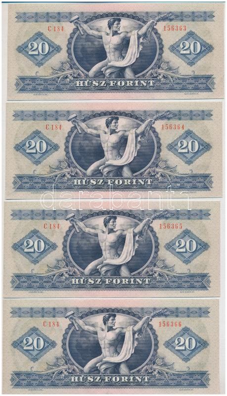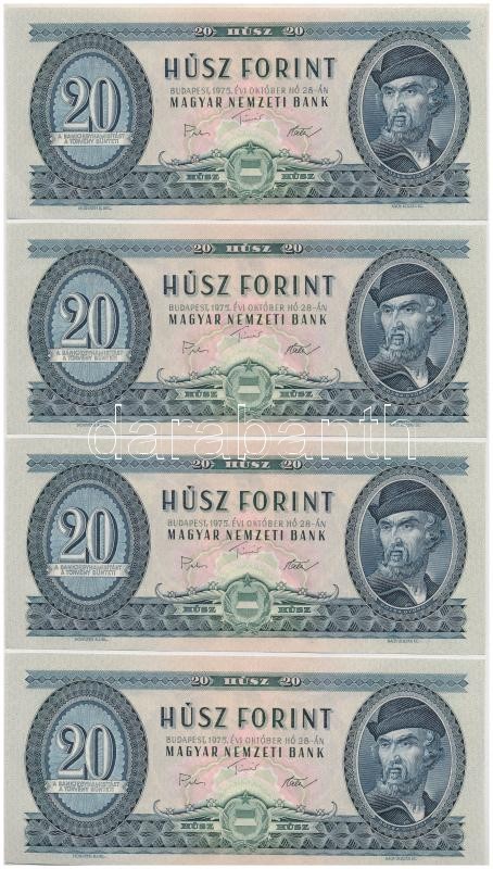 1975. 20Ft (4x) sorszámkövetők T:I https://www.darabanth.com/hu/355-Gyorsarveres/355.0/Numizmatika/Magyar-bankjegyek~2500007/1975-20Ft-4x-sorszamkovetok-TI~II2030855