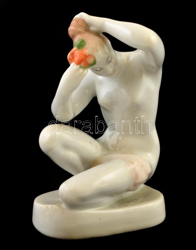 Leírás: Aquincumi porcelán akt, kézzel festett, jelzett, kis kopásnyomokkal, m: 13 cm