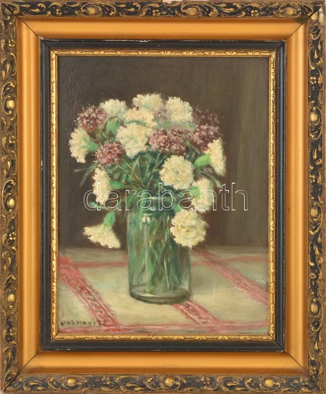 Leírás: Markovits István (1892-?): Virágcsendélet. Olaj, karton, jelzett, keretben, 33×24 cm
