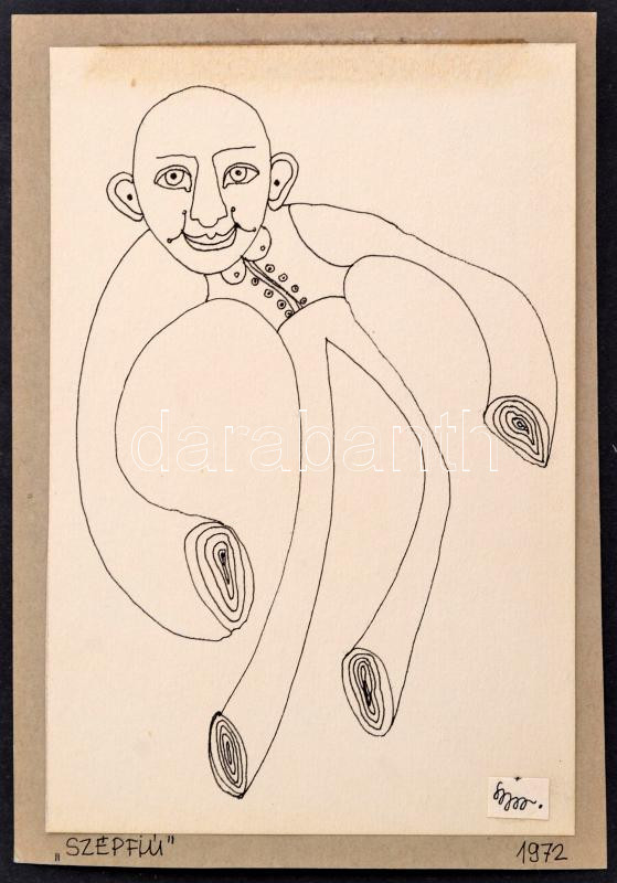 Leírás: Szaniszló Júlia (1950-1989): Szépfiú. 1972. Tusrajz. 15x10cm