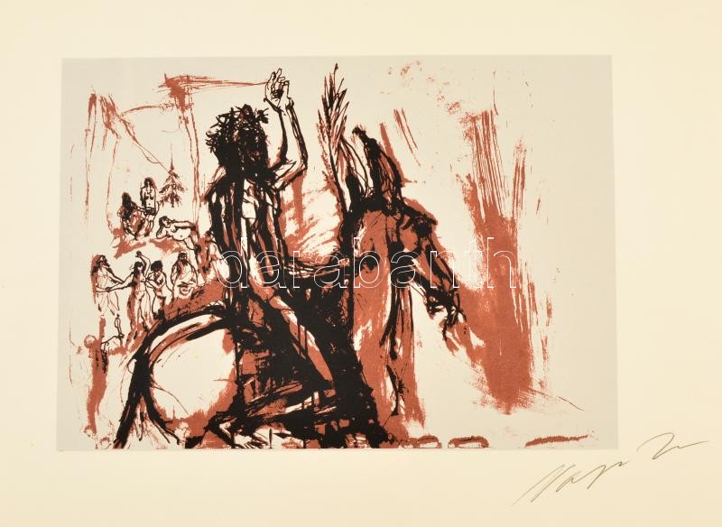 Leírás: Varga Imre (): Lovas. Szitanyomat, papír, 27×38 cm