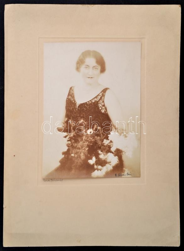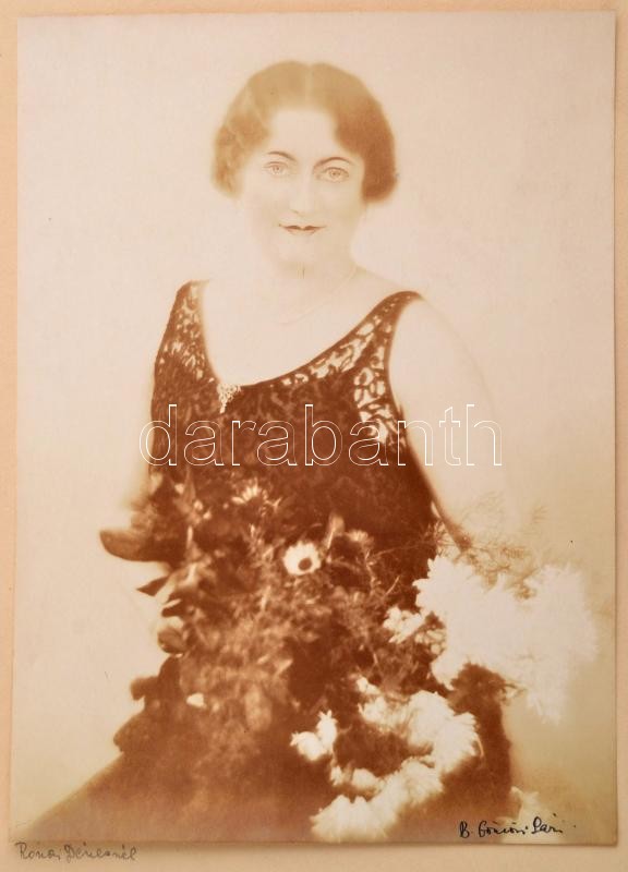 Leírás: cca 1925 Rónai Dénesné feliratú vintage fénykép B. Gömöri Sára aláírással, 22,5x16,5 cm, karton 40x29,5 cm