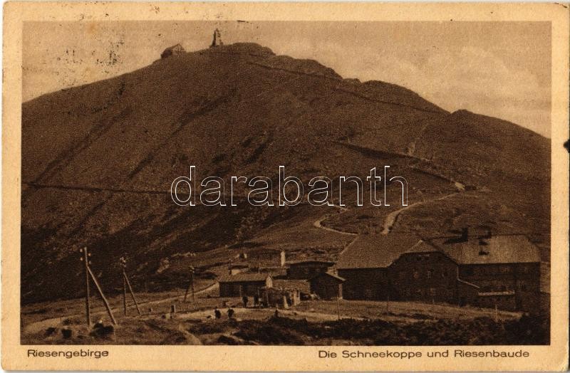 1922 Krkonose, Riesengebirge; Die Schneekoppe und Riesenbaude / Snezka... https://www.darabanth.com/hu/356-Gyorsarveres/356.0/Kepeslapok/Cseh-Koztarsasag~1500018/1922-Krkonose-Riesengebirge-Die-Schneekoppe-und-Riesenbaude-Snezka-mountain-hotel~II2040210