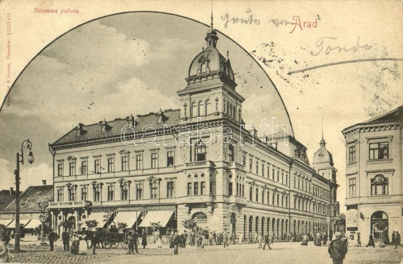 1902 Arad, Neumann palota, Hungaria kávéház, üzletek / palace, café, s... https://www.darabanth.com/hu/356-Gyorsarveres/356.0/Kepeslapok/Erdely~1500006/1902-Arad-Neumann-palota-Hungaria-kavehaz-uzletek-palace-cafe-shops-EK~II2041974