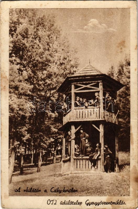 Leírás: Gyergyószentmiklós, Gheorgheni; OTI üdülőtelep, kilátás a Csiky kertben. Bányász Ede felvétele / holiday resort, small lookout tower (fl)