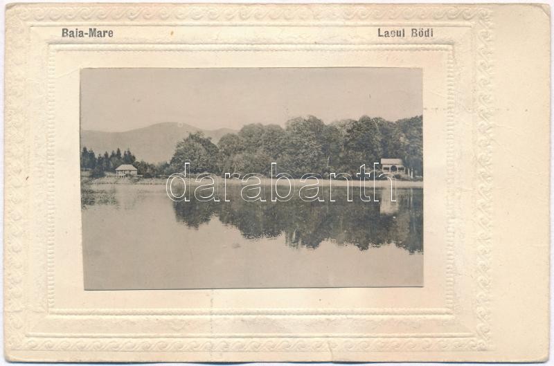 Leírás: Nagybánya, Baia Mare; Lacul Bödi. Libraria si Tipografia Aladar Frankovits / Bódi tó / lake. photo (ázott / wet)