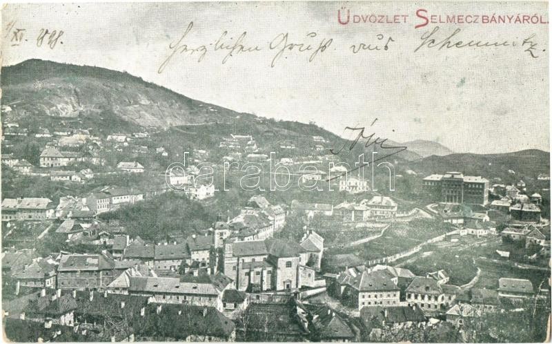 1898 Selmecbánya, Schemnitz, Banská Stiavnica; látkép a Bányászati főiskola palotáival / general view with mining college and forestry school palaces (EK)