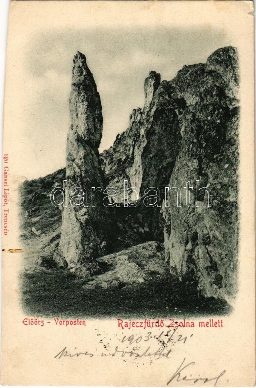 1903 Rajecfürdő, Rajecké Teplice; Előörs sziklák. Gansel Lipót 120. / ... https://www.darabanth.com/hu/356-Gyorsarveres/356.0/Kepeslapok/Felvidek~1500007/1903-Rajecfurdo-Rajecke-Teplice-Eloors-sziklak-Gansel-Lipot-120-Vorposten-rock-format~II1954806