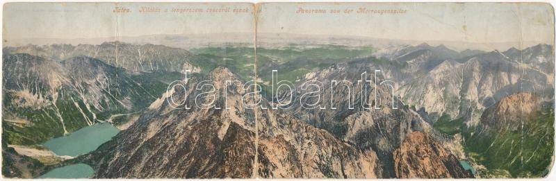 1904 Tátra, Magas Tátra, Vysoké Tatry; Kilátás a Tengerszem csúcsról észak felé. Cattarino Sándor kiadása 179. sz. Kihajtható panorámalap / Panorama von der Meeraugenspitze / High Tatras panorama from Rysy mountain peak. folding panoramacard (b)