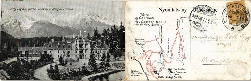 Leírás: 1908 Tátra, Tatry; Móry szálló Újcsorbán. kihajtható reklámlap térképpel / Nové Strbské Pleso / hotel, lake. folding advertisement card with map