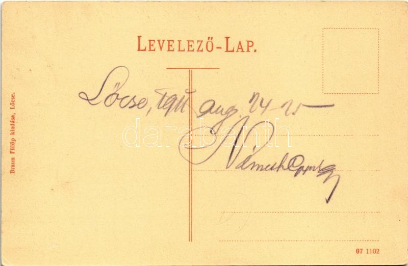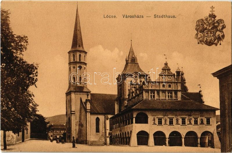 1911 Lőcse, Levoca; Városháza, címer. Kiadja Braun Fülöp / Stadthaus ... https://www.darabanth.com/hu/356-Gyorsarveres/356.0/Kepeslapok/Felvidek~1500007/1911-Locse-Levoca-Varoshaza-cimer-Kiadja-Braun-Fulop-Stadthaus-town-hall-coat-of-arm~II1974927