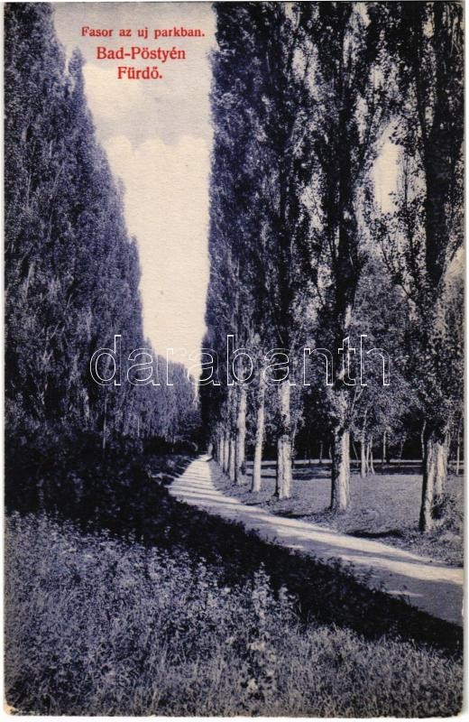 1911 Pöstyén, Pistyan, Piestany; Fasor az új parkban. Kiadja Laufer Nándor 26. sz. / alley of trees in the new park (kissé ázott sarkak / slightly wet corners)