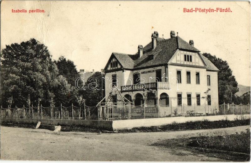 1911 Pöstyén-fürdő, Kúpele Piestany; Izabella pavilon. Laufer Nándor k... https://www.darabanth.com/hu/356-Gyorsarveres/356.0/Kepeslapok/Felvidek~1500007/1911-Postyen-furdo-Kupele-Piestany-Izabella-pavilon-Laufer-Nandor-kiadasa-Villa-Isabella~II1938780