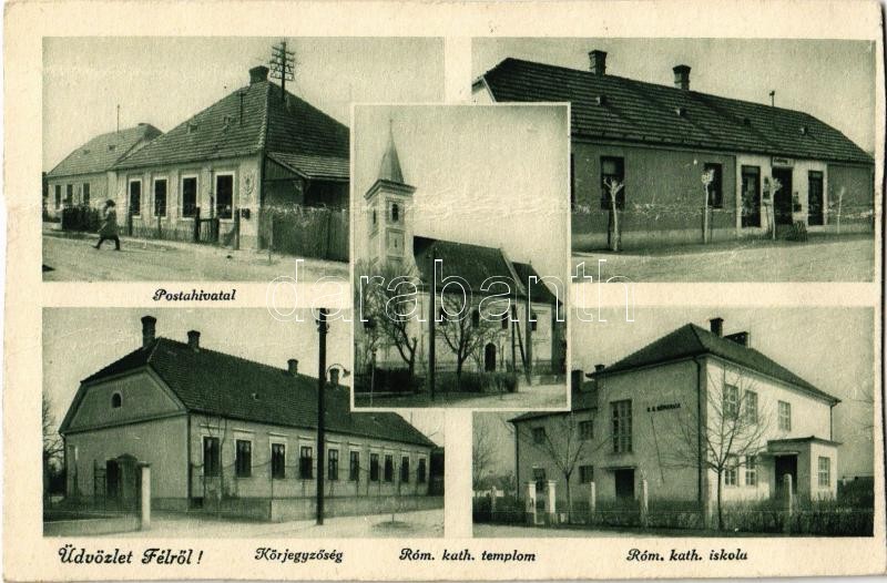 Fél, Feilendorf, Tomasov; Posta hivatal, Római katolikus templom és iskola, Körjegyzőség, üzlet / post office, Catholic church and school, notary, shop (b)