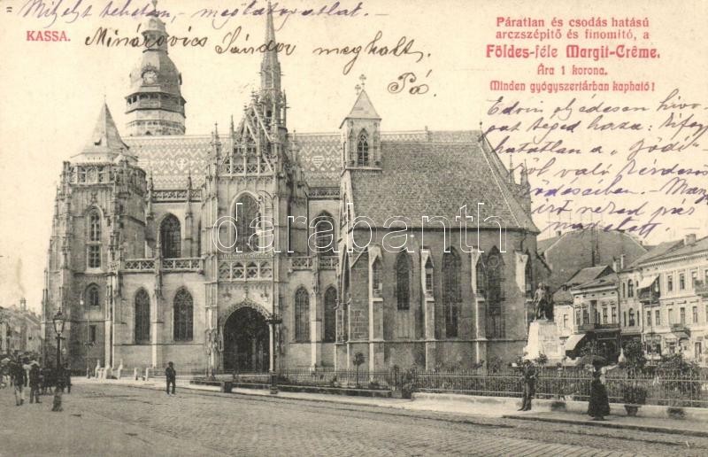 Leírás: Kassa, Kosice; Dóm, üzletek. Földes Margit Creme reklám / cathedral, shops, advertisement