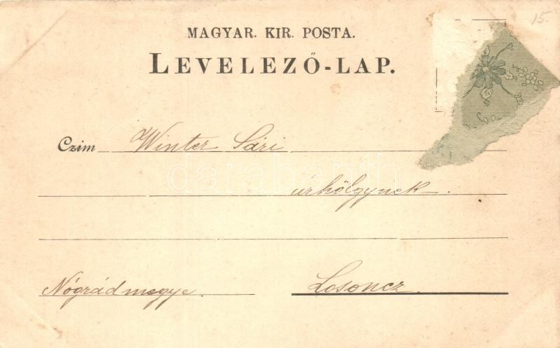Leírás: Kassa, Kosice; Fő tér lóvasúttal és Nagy szállóval, Adria üzlet / main square with horse-drawn tram and Grand Hotel, shop. Floral, litho (Rb)