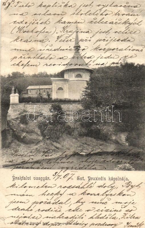 Prakfalva, Prakendorf, Prakovce; Vasgyár St. Praxedis kápolnája / iron... https://www.darabanth.com/hu/356-Gyorsarveres/356.0/Kepeslapok/Felvidek~1500007/Prakfalva-Prakendorf-Prakovce-Vasgyar-St-Praxedis-kapolnaja-iron-works-chapel-r~II1908192