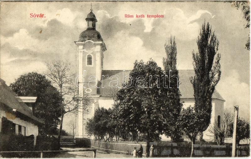 Leírás: Tótsóvár, Sóvár, Solivar; templom. Schulhoff Mór kiadása / church (ragasztónyom / gluemark)