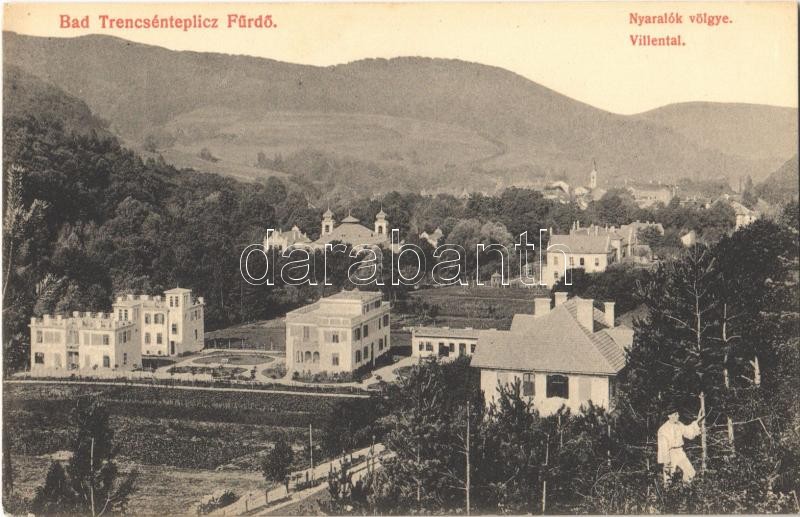 Leírás: Trencsénteplic, Trencianske Teplice; Nyaralók völgye / Villental / villas