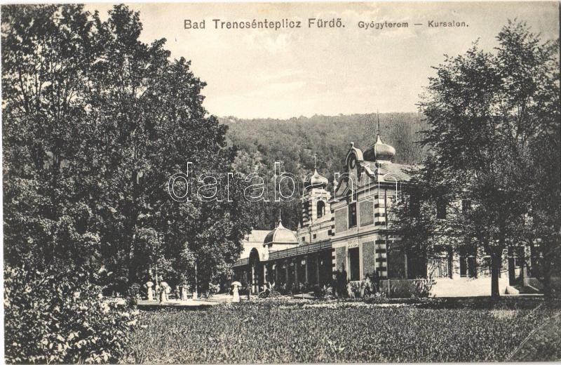Leírás: Trencsénteplic, Trencianske Teplice; fürdő, gyógyterem. Kiadja Ondreiecska Fábián 5. / Kursalon / spa, baths