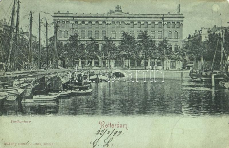 1899 Rotterdam, Postkantoor / post office, boats (EK) https://www.darabanth.com/hu/356-Gyorsarveres/356.0/Kepeslapok/Hollandia~1500024/1899-Rotterdam-Postkantoor-post-office-boats-EK~II2041735