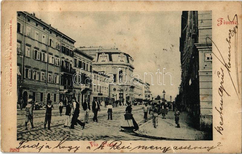 Leírás: 1900 Fiume, Rijeka; Via Porto / street view. C. Ledermann jr. 2282. (kis szakadás / small tear)