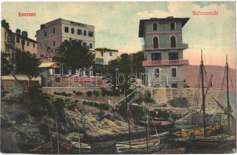 Lovran, Laurana, Lovrana; Hafenansicht / kikötő, Hotel Konics villa / ... https://www.darabanth.com/hu/356-Gyorsarveres/356.0/Kepeslapok/Horvatorszag~1500009/Lovran-Laurana-Lovrana-Hafenansicht-kikoto-Hotel-Konics-villa-port-hotel-villa-boats-Jo~II2041715