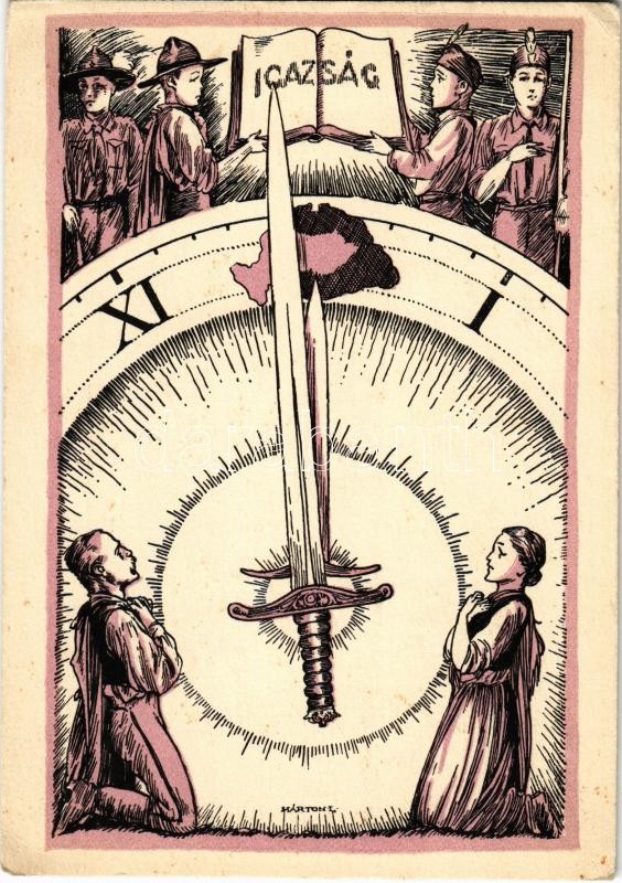 Leírás: Igazság. Irredenta propaganda lap cserkészekkel és leventékkel / Hungairan irredenta propaganda with boy scouts, Trianon map s: Márton L. (EK)