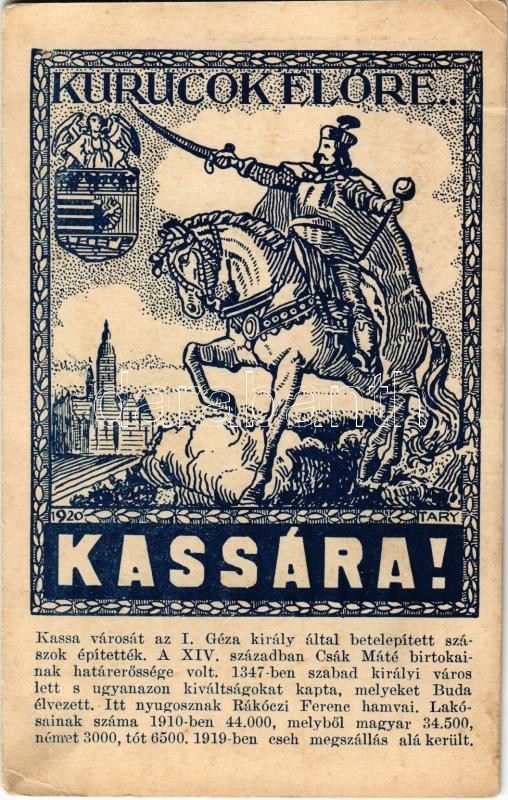 Kurucok előre Kassára! / Hungarian irredenta propaganda, Kosice s: Tar... https://www.darabanth.com/hu/356-Gyorsarveres/356.0/Kepeslapok/Irredenta~1500054/Kurucok-elore-Kassara-Hungarian-irredenta-propaganda-Kosice-s-Tary-EB~II2040982