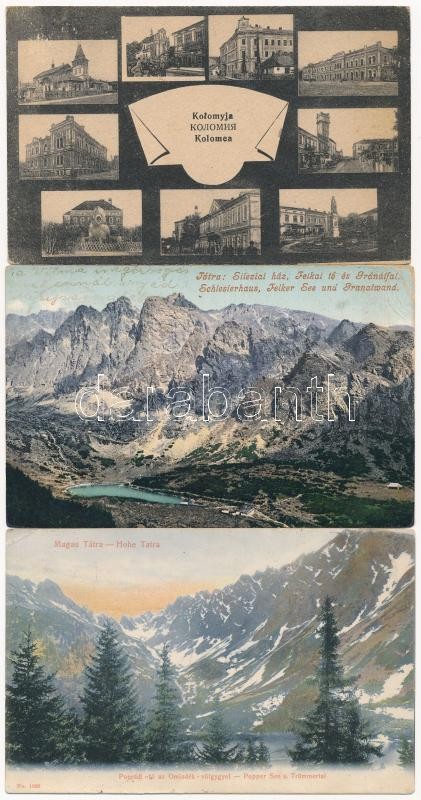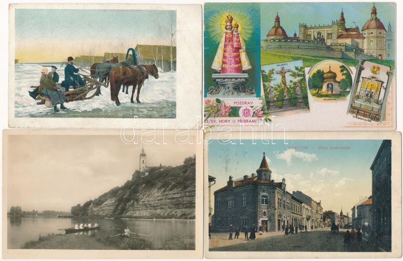 42 db főleg régi külföldi városképes lap, közte néhány történelmi magyar településsel, Tátrával / 42 mainly pre-1945 European town-view postcards, among them some Historical Hungarian towns and High Tatras cards also