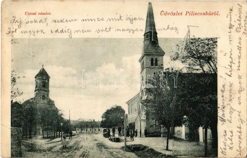1905 Piliscsaba, utca, Római katolikus templom, Református templom. Ki... https://www.darabanth.com/hu/356-Gyorsarveres/356.0/Kepeslapok/Magyarorszag~1500005/1905-Piliscsaba-utca-Romai-katolikus-templom-Reformatus-templom-Kiadja-Rigocz-Jozsef-EK~II2040265