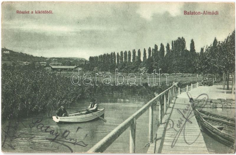 Leírás: 1907 Balatonalmádi, kikötő, stég, csónak. Kiadja Pethe Viktor (EK)