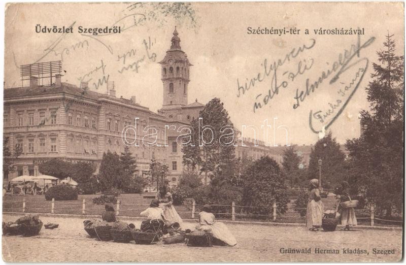 1907 Szeged, Széchenyi tér, Városháza, piaci árusok, Hay Miksa üzlete.... https://www.darabanth.com/hu/356-Gyorsarveres/356.0/Kepeslapok/Magyarorszag~1500005/1907-Szeged-Szechenyi-ter-Varoshaza-piaci-arusok-Hay-Miksa-uzlete-Kiadja-Grunwald-Herman~II2041936