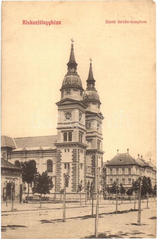 1910 Kiskunfélegyháza, Szent István templom, Beregi Jakab üzlete. W.L.... https://www.darabanth.com/hu/356-Gyorsarveres/356.0/Kepeslapok/Magyarorszag~1500005/1910-Kiskunfelegyhaza-Szent-Istvan-templom-Beregi-Jakab-uzlete-WL-5-EM~II1923023