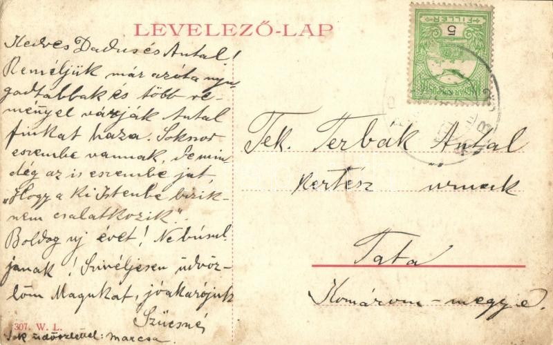 Leírás: 1912 Abony, Nagy-Abony; Református templom, Busztin Adolf, Brück Adolf üzlete. W. L. 307. (kopott sarkak / worn corners)