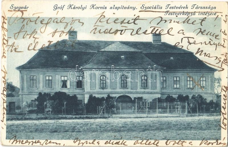 1933 Szegvár, Gróf Károlyi Kornis alapítvány, Szociális Testvérek Társasága Testvérképző Intézete (Károlyi kastély). Kiadja a Hangya Szövetkezet (gyűrődés / crease)