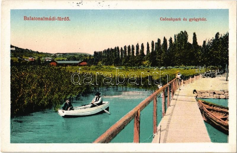 Balatonalmádi, Csónakpark és gyógyház, evezős csónak https://www.darabanth.com/hu/356-Gyorsarveres/356.0/Kepeslapok/Magyarorszag~1500005/Balatonalmadi-Csonakpark-es-gyogyhaz-evezos-csonak~II2037989