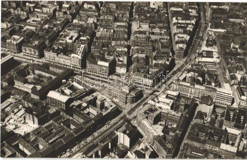 Leírás: Budapest VIII. Erzsébet körút, Blaha Lujza tér, villamosok, légi felvétel. Képzőművészeti Alap / aerial view