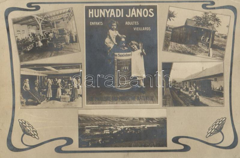 Leírás: Budapest XI. Hunyadi János keserűvíz palackozó üzem részletek, szecessziós reklám képeslap / Art Nouveau mineral water advertisement